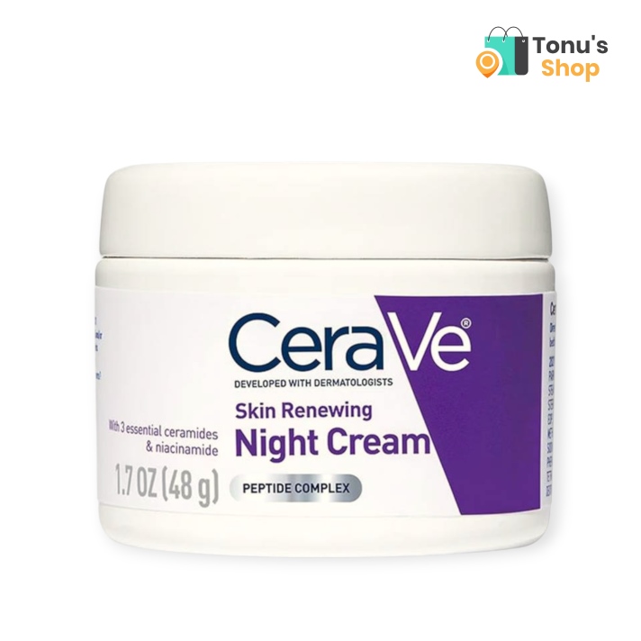 CeraVe Skin Renewing Night Cream (48g) is your nightly ally for smooth, hydrated, and healthy-looking skin. Wake up to skin that feels nourished, protected, and revitalized every morning.
